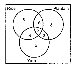 The venn diagram shows the choice of food of a number of visitors to a canteen. If there were 35 visitors in all, find the value of x
