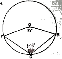 In the diagram, O is the centre of the circle and < PQR = 106º, find the value of y