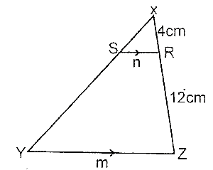 |RZ| = 12cm, |SR| = n, |XZ| = m and SR||YZ. Find m in terms of n