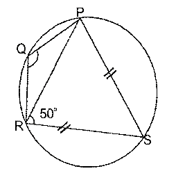 RPS = 50o; < RSP + < PRS + < RPS = 180(sum of < s in a triangle)