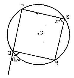 In the diagram, O is the centre of the circle and PQRS is a cyclic quadrilateral. Find the value of x.
