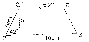 PQRS is a trapezium. QR//PS, /PQ/ = 5cm, /OR/ = 6cm, /PS/ = 10cm and angle QPS = 42