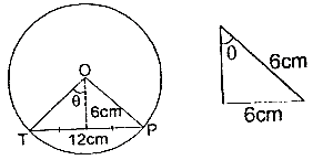 In the diagram, /TP/ = 12cm and it is 6cm from O, the centre of the circle, Calculate < TOP