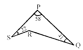 In the diagram, < PSR = 220o, < SPQ = 58o and < PQR = 41o. Calculate the obtuse angle QRS.