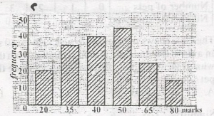 The bar chart shows the marks distribution in am English test. If 50% is the pass mark, how many students passed the test?