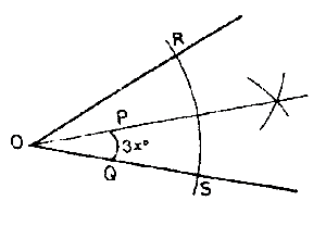 In the diagram, < ROS = 66o and < POQ = 3x. some construction lines are shown. Calculate the value of x.
