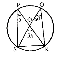 In the diagram, O is the centre of the circle, < SQR = 60o, < SPR = y and < SOR = 3x. Find the value of (x + y)
