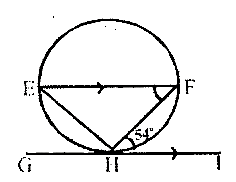 In the diagram, GI is a tangent to the circle at H. If EF//GI, calculate the size of < EHF