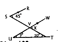 In the diagram, ST is parallel to UW, < WVT = xo, < VUT = yo, < RSV = 45o and < VTU = 20o. Find the value of x