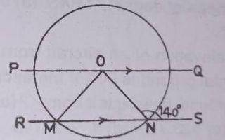 In the diagram, O is the centre. If PQ//RS and ∠ONS = 140°, find the size of ∠POM.