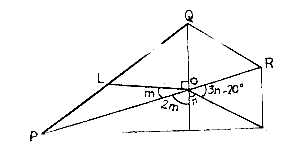 In the given diagram, \(\bar{QT}\) and \(\bar{PR}\) are straight lines, < ROS = (3n - 20), < SOT = n, < POL = m and < QOL is a right angle. Find the value of n.