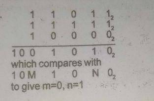 The sum 11011\(_2\), 11111\(_2\) and 10000\(_2\) is 10m10n0\(_2\). Find the value of m and n.