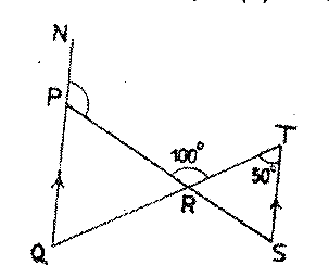 In the diagram, NQ//TS, <RTS = 50\(^o\) and <PRT = 100\(^o\). Find the value of <NPR
