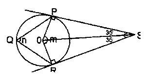In the diagram, PS and RS are tangents to the circle centre O. ∠PSR = 70°, ∠POR = m, and ∠PSR =n. Find ( m + n ).