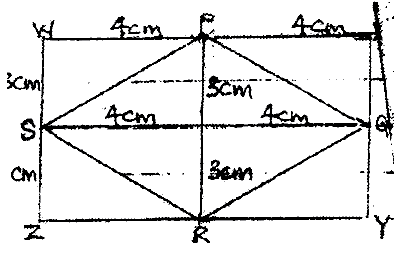 In the diagram, WXYZ is a rectangle with diamension 8cm by 6cm. P, Q, R and S are the midpoints of the rectangle as shown. Using this information calculate the area of the part of the rectangle that is not shaded
