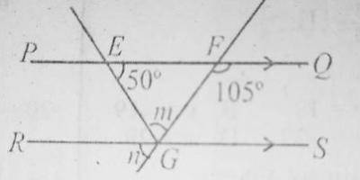 In the diagram, PQ is parallel to RS, < QFG = 105\(^o\) and < FEG = 50\(^o\). Find the value of m.