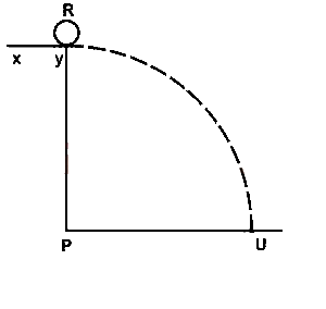 An object R leaves a platform XY with a horizontal velocity of 7m-1 and lands at Q. lf it takes the same object 0.3s to fall freely from Y to P, calculate the distance PQ.(Take g = 1Oms2)