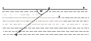 The diagram above shows an incident ray A, inclined at angle of 50o to the interface CB. The ray OB is found to lie along the surface. What is the refractive index of the medium X with respect to air?