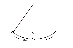 An oscillating pendulum has a velocity of 2ms-1 at the equilibrium position O and velocity at same point P. Using the diagram above, calculate the height of P above O. (Take g = 10ms2)