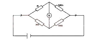 What is the value of R when G shows no deflection in the circuit illustrated above?