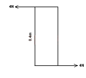 Two forces each of 4 N act on the opposite sides of a rectangular plate as shown in the diagram above. Calculate the magnitude of g the couple acting on the plate.