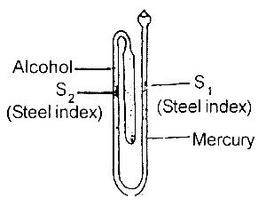 The diagram above represents six maximum and minimum thermometer. If the temperature of the surrounding falls, which of the following correctly states how the thermometer would respond to the change in temperature?