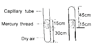 The set-up illustrated above shows a capillary tube of uniform cross-sectional area in two different arrangements. Using the data in the diagrams. Calculate the pressure of the atmosphere