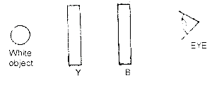 In the arrangement illustrated above, Y and B are yellow and blue transparent light filters respectively through the filters is