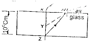 Calculate the refractive index of the material of the glass block shown in the diagram if YZ = 4cm