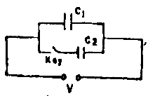 Two capacitors C1 and C2 are connected as shown in the diagram. The capacitance C2 is twice C1 when the key is opened the energy stored up in C1 is W. If the key is later closed and the system is allowed to attain electrical equilibrium, the total energy stored in the system will be