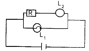 In the circuit above R is a resistor whose resistance increases with an increase in temperature. L1 and L2 are identical lamps. If the temperature of R increases