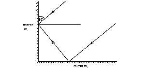 A ray of light is incident on mirror m1 and after reflection is incident on mirror m2 as shown in the diagram, calculate the angle of reflection of the ray at mirror m2