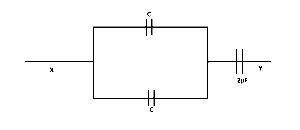 The effective capacitance between points X and Y in the diagram below is 1.0μF, What is the value of the capacitance C, measured in micro-farad?
