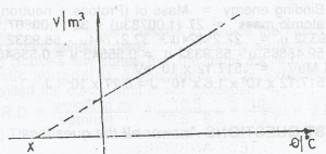 The diagram shows the variation of volume V of a glass with temperature at the point X is