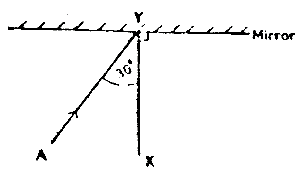 In the diagram above, an incident ray AY makes an angle of 30o with the normal XY. If the mirror is rotated anticlockwise about Y through an angle of 20o, while AY is fixed, what angle will the reflected ray now make with the incident ray?