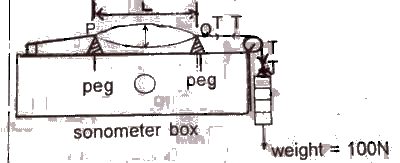 The diagram above shows the wire of a sonometer box set into resonance by a vibrating tuning fork of frequency f, when the wire is stretched by a tension T, the resonating length of the wire is I while the wavelength of the sound produced is \(\lambda\). Which of the following statements is not correct? The wave produced on the wire is