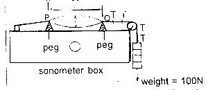 The diagram above shows the wire of a sonometer box set into resonance by a vibrating tuning fork of frequency f, when the wire is stretched by a tension T, the resonating length of the wire is I while the wavelength of the sound produced is \(\lambda\). Which of the following statements about the frequency of vibration of the wire is not correct?