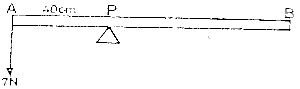 In the diagram above, AB represents a uniform rod of length 1.50m which is in equilibrium on a pivot at P, If AP = 40cm, calculate the mass of the rod. [g = 10ms-2]