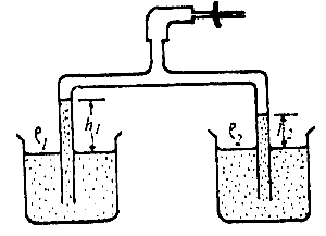 The diagram above illustrates a Hare's apparatus. \(\mathit{e}_1, \mathit{e}_2\) represent densities and \(\mathit{h}_1, \mathit{h}_2\) heights of columns of liquids. Which of the following equations is correct?