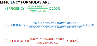 Efficiency = \(\frac{\text{load distance}}{\text{effort distance}}\) x 100%