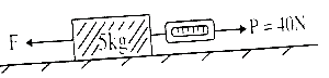 A block of wood of mass 5kg is pulled on a platform by a force of 40N as illustrated in the diagram above. If the frictional force, F experienced by the block is 12N, calculate the magnitude of the acceleration of the acceleration of the block
