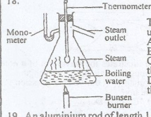 A mercury-in-glass thermometer read 4cm at ice point and 29cm at steam point. Calculate the temperature when the mercury level is at 9cm