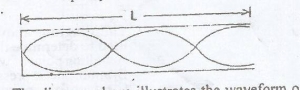 The diagram given illustrates the waveform of a note produced by vibrations in an air column of length L. If the speed of sound in air is V, derive an expression for the frequency of the notes