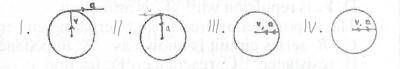 A body is whirled round a circular path at constant speed. Which of the following diagrams correctly indicates the direction of the body's velocity (v) and its acceleration (a)?