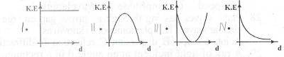 Which of the following graphs correctly represents the relationship between the kinetic energy (K.E) and the displacement (d) from point of release of a swinging pendulum bob?