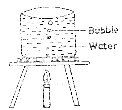 The diagram above illustrates a beaker of water being heated. It is observed that as the bubbles rise they get bigger in size.The reason for this observation is