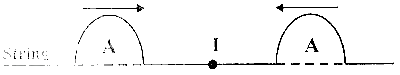 The diagram above illustrates two waves of equal amplitudes A and frequencies approaching each other. When the two waves meet at a point I midway between them, the vertical displacement of the resulting wave will be