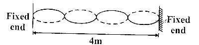 The diagram above illustrates a wave setup between two fixed ends 4.0m apart. If the speed of the wave is 1.0\(ms^{-1}\), its wavelength and frequency respectively are