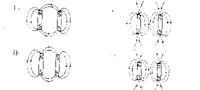 Two bar magnets are placed near each other. Which of the following diagrams correctly illustrates the magnetic field pattern formed by the pair?