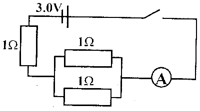 A circuit is set up as shown in the diagram above. When the key is closed, the ammeter reading will be